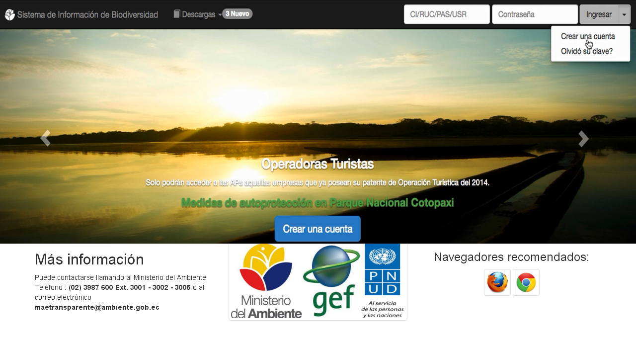 Para realizar el Registro de usuarios del SIB, ubicamos el botón «Ingresar» y seleccionamos la opción «Crear una cuenta»