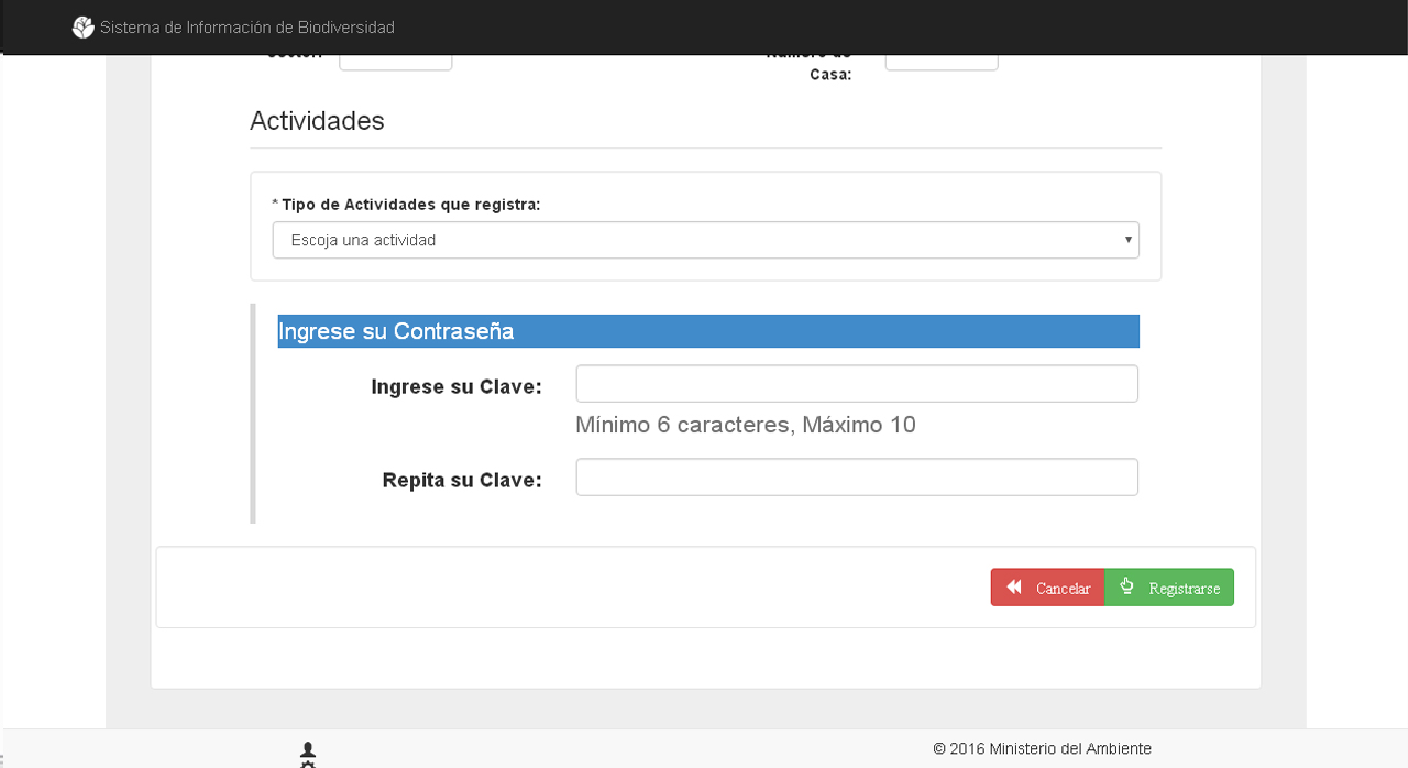 Ahora se ingresa una Clave y se escribe nuevamente en el campo siguiente, posteriormente se hace clic en el botón Registrarse.