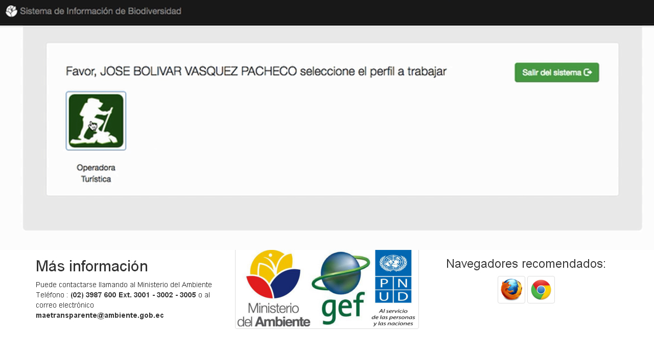 Al ingresar al sistema se despliega una ventana en la que aparece el perfil asignado, que en este caso es el de Operadora turística, debes dar clic en ese ícono